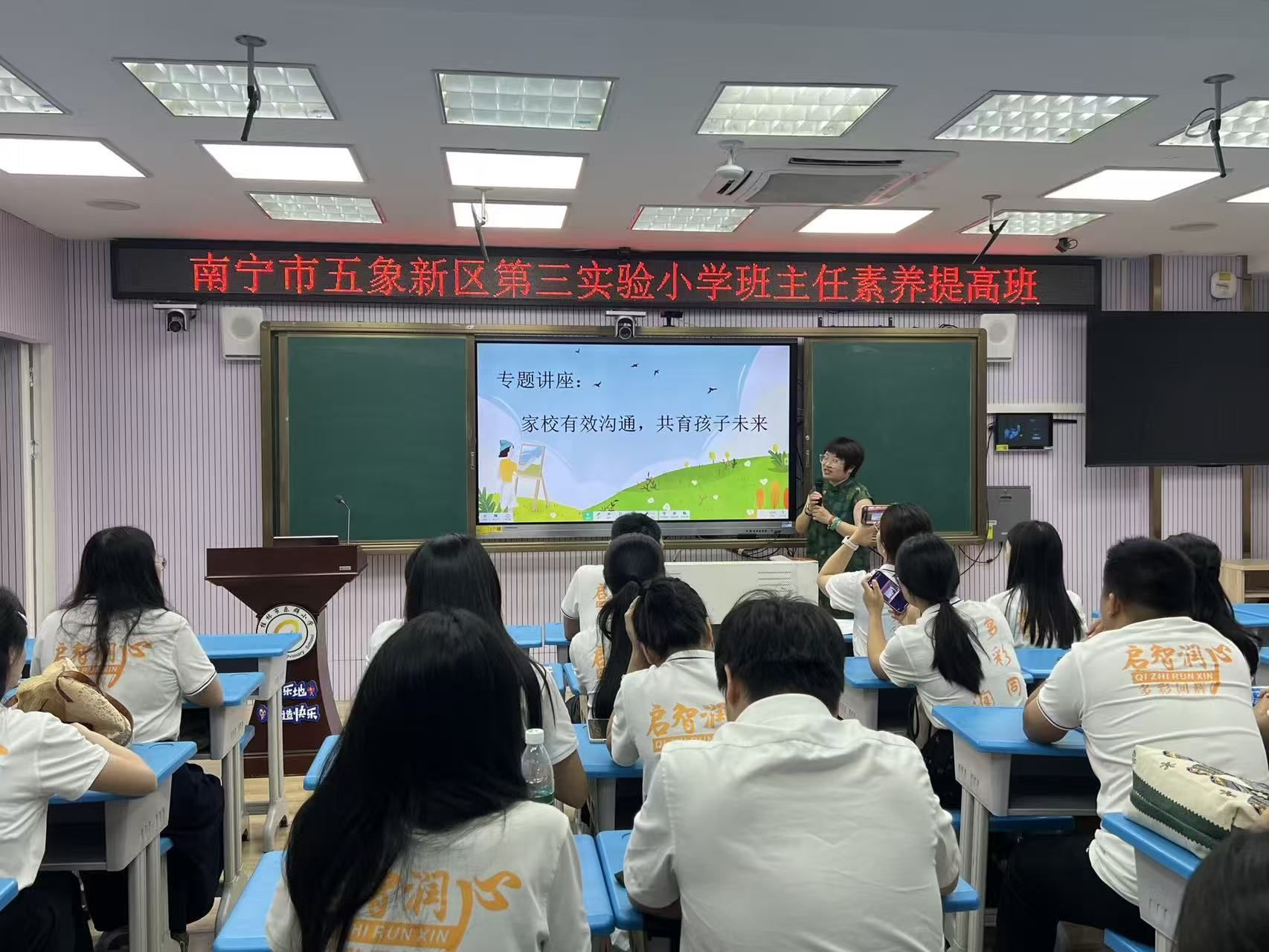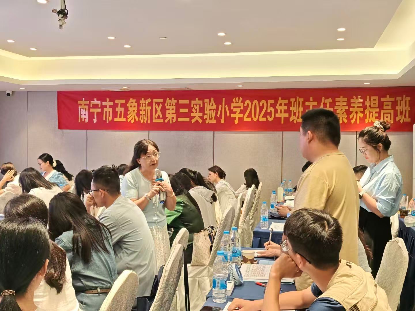 7月8日至14日,我校承办的“2025年暑期班主任素养提高班”在桂林圆满结业,南宁市五象新区第三实验小学12名骨干班主任参加。本次培训依托我校基础教育师资培训平台,邀请广西师大陈劲、桂林教科院王文蓉、南宁教科所刘冬梅三位专家,围绕差异化教育、教育家精神与技能实操开设3场专题讲座,并走进桂林育才小学、乐群小学开展现场教学。参训教师系统学习“气质类型沟通法”“班会三要素”“情境答辩四步法”等核心技能,带回“学生调解室”“班级文化众筹”等可复制经验。据悉,我校将持续跟踪成果转化,助力五象三小打造“个性档案+学生主导班会+行走思政课”系列改革,为南宁市基础教育班主任队伍建设贡献“南师方案”。